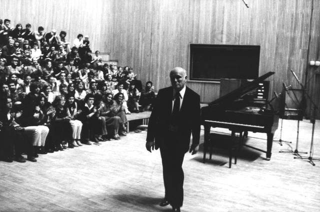 Rosyjski pianista Światosław Richter na estradzie Sali Koncertowej Akademii Muzycznej im. Fryderyka Chopina w Warszawie podczas koncertu, który odbył się 20 września 1980 w ramach XXIV Międzynarodowego Festiwalu Muzyki Współczesnej "Warszawska Jesień".