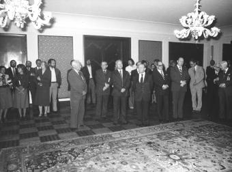 Goście zgromadzeni podczas bankietu na otwarcie XXV Międzynarodowego Festiwalu Muzyki Współczesnej "Warszawska Jesień", który odbył się 18 września 1981 w Filharmonii Narodowej.