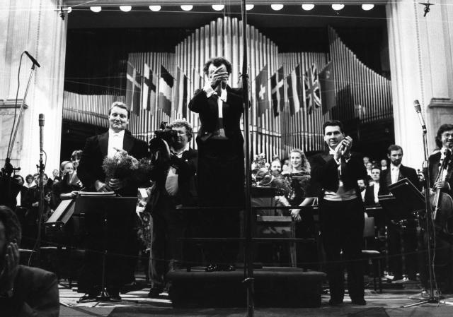 Anotni Wit na czele Wielkiej Orkiestry Symfonicznej Polskiego Radia w Katowicach po estradowym wykonaniu fragmentów opery Saint François d'Assise (Święty Franciszek z Asyżu) Oliviera Messiaena.