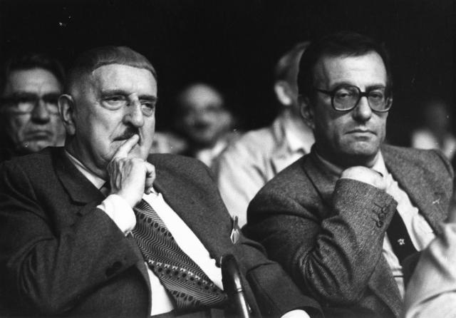 Jerzy Waldorff wśród publiczności zgromadzonej w Sali Koncertowej Filharmonii Narodowej podczas jednego z koncertów XXXII Międzynarodowego Festiwalu Muzyki Współczesnej „Warszawska Jesień”.