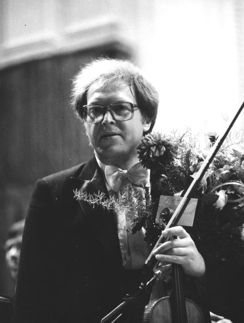 Grigorij Żyslin z kwiatami po wykonaniu II Koncertu skrzypcowego cis-moll op. 129 Dmitrija Szostakowicza wraz z Państwową Akademicką Orkiestrą Symfoniczną Filharmonii Leningradzkiej.